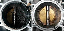 Детали очищаются (автохимией) химическим реагентом, который заливается в цилиндры через свечные отверстия. Двигатель частично разбирается. Можно самостоятельно. Очищает только поршневые кольца и камеру сгорания.